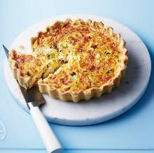 | Chicken tart with leeks and Gruyere recipe | delicious. magazine butter, chicken, shortcrust pastry, olive oil, thyme, leek, eggs, mustard, cheese, double cream This shortcrust pastry chicken and leek tart is a great low-cost recipe which doesn't scrimp on taste. Preheat the oven to 200 C/fan180 C/gas 6. Roll out a 500g pack shortcrust pastry on a lightly...