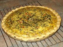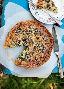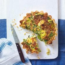 | Leek, kale and Gruyere cheese quiche recipe | delicious. magazine butter, shortcrust pastry, chives, leek, kale, eggs, cheese, double cream This tasty vegetarian quiche uses ready-made pastry for extra speed. This recipe is also great for using up leftover veg in a midweek meal. Preheat the oven to 200 C/fan180 C/gas 6. Line an 18cm flan ...