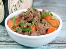 | Irish Beef Stew Recipe with Guinness - Food.com beef stewing meat, beef stock, olive oil, thyme, rosemary, pepper, parsley, bay leaf, carrot, onion, garlic, salt, fat, stout, flour, meat THis Irish Beef Stew Recipe with Guinness from Food.com will be the star dish at any St. Patrick's Day Party. Serving Size: 1 (491) g Servings Per Recipe: 4 AMT. PER SERVING % DAILY VALUE Calo...