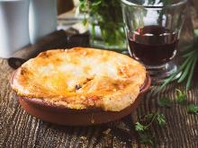 | Guinness Beef Pie Recipe - Food.com butter, puff pastry, beef stock, olive oil, rosemary, pepper, mushrooms, carrot, onion, garlic, celery, eggs, salt, cheddar cheese, stout, flour British Isles-themed pot pie, based on a recipe by chef Jamie Oliver. Serving Size: 1 (932) g Servings Per Recipe: 6 AMT. PER SERVING % DAILY VALUE Calories: 1338.2 Calories from Fat 597 g 45 % T...