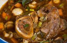 | Jamie Oliver - Beef and Guinness Stew Recipe - Food.com beef stewing meat, tomato paste, beef stock, thyme, bay leaf, button mushroom/champignon, onion, garlic, celery, stout, flour I've posted a version of this same recipe but with dumplings. I wanted to add the stew alone so that the nutrition info would be calculated without the dumplings in case anyone needed that. :) Ser...