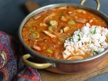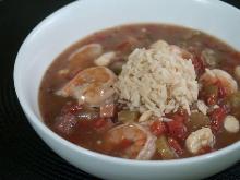 File Gumbo – Recipes Network butter, chicken, andouille sausage, yellow/orange bell pepper, oil, thyme, sassafras, pepper, parsley, cayenne pepper, bay leaf, onion, garlic, okra, shrimp, ham, salt, water, flour Step 1 Heat some vegetable oil in a large stockpot over medium-high heat and cook the chicken in batches until it is golden brown. Remove with a slotted spoon and set aside. Add the flour to the chic...