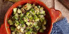 | Grilled Pineapple Salsa with Cucumber (Salsa de Pina Asada con Pepino y Habanero) Recipe | EatingWel red onion, coriander leaf, chili pepper, pineapple, cucumber, salt, lime juice Habanero chile gives this caramelized pineapple salsa recipe a little spice. If you're looking to tame the heat, try fresh jalapeños instead. Serve with grilled chicken or fish, as a dip with...
