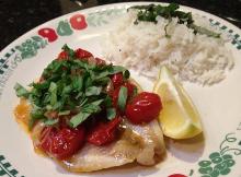 | Poached Halibut With Tomato and Basil Recipe - Food.com olive oil, pepper, basil, lemon, shallot, garlic, tomato, halibut, salt, white wine A great fish dish that is also low carb and healthy. Courtesy Rachael Ray. The Mediterranean Succotash recipe I've posted is made to go with this. Serving Size: 1 (322) g Servings Per Recipe: 4 ...