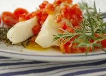 | Grilled Halibut With Rosemary and Tomato-basil Sauce Recipe - Food.com orange peel, olive oil, rosemary, pepper, basil, spring onion, tomato, halibut, red wine vinegar, salt, lemon juice Marinating is a great way to bring out the flavor of foods and help them cook faster. Serving Size: 1 (157) g Servings Per Recipe: 4 AMT. PER SERVING % DAILY VALUE Calories: 207.4 Calories from F...
