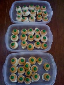 | Eyeball Cookies Halloween Recipe - Food.com food coloring, wafers, red food coloring, white chocolate, chocolate These look scary fun on a plate for a kids and adult Halloween party! Serving Size: 1 (348) g Servings Per Recipe: 1 AMT. PER SERVING % DAILY VALUE Calories: 86.7 Calories from Fat 42 g 49 % Tot...