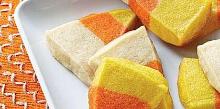 | Halloween Cookie Bites Recipe | MyRecipes butter, lemon peel, vanilla extract, eggs, salt, sugar, yellow food coloring, red food coloring, flour Those fancy slice-and-bake cookies are a breeze to make at home thanks to a little food coloring. Plus, the colors make it easy to portion the cookies into three easy bites. Instructions Checklist St...