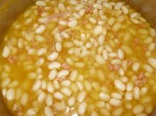 | Ham & Beans Recipe - Food.com soup mix, bay leaf, onion, garlic, bean, bacon, salt, water This is the method I use for all my bean-cooking needs (when I don't break out my trusty pressure cooker). This amount of liquid makes a very stiff batch of beans. Serving Size: 1 (263) g Serving...