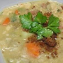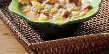 | Ham-And-Bean Soup Recipe - Food.com cannellini bean, olive oil, pepper, navy bean, black-eyed pea, potato, carrot, spring onion, onion, celery, ham, stock or broth Modified from Southern Living. This is a great way to use leftover holiday ham. Use 2 cup or 1 (16-0z.) lean ham steak. Don't forget to toss in the bone for added flavor. Serving Size: 1 (517) g ...