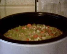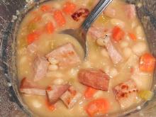 | Slow Cooker Ham and Beans Recipe - Food.com pepper, navy bean, carrot, onion, celery, ham, salt, water Slow cooker Ham and Beans soup! I use my leftover meaty ham bone from Easter just like my mom used too. You'll love the way the ham falls off the bone as you shred it for the soup. Throw in all th...