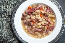 | Ham and Bean Soup white bean, ribs, hot sauce, olive oil, herbes de provence, pepper, parsley, carrot, onion, garlic, celery, ham, salt, seasoning, water Hearty Ham and Bean Soup, perfect for cold winter days! White beans, ham shanks, onions, celery, carrots, garlic, Tabasco, and herbs make this delicious ham and bean soup a cool weather classic. Soak ...