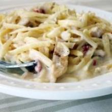 | Linguine Ham And Cheese Toss Recipe butter, swiss cheese, pepper, mustard powder, peas, onion, ham, salt, pasta, milk, half and half, flour Cook linguine according to package directions. Drain well and set aside. Saute' onions in butter in large skillet until tender. Add flour and stir until well blended. Cook 1 minute, stirring cons...