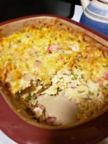 | Ham & Cheese Casserole Recipe - Food.com butter, chicken soup, hash brown, ham, cheddar cheese, sour cream This casserole is a great choice for a potluck or for a one-dish meal at home. Serving Size: 1 (264) g Servings Per Recipe: 6 AMT. PER SERVING % DAILY VALUE Calories: 878.5 Calories from Fat 567 g...