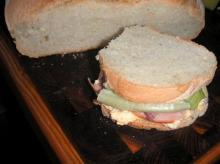 | Open-Face Ham-and-Egg Sandwich Recipe | MyRecipes butter, provolone, ciabatta, pepper, basil, garden rocket, eggs, ham, vinaigrette, salt, bread It's easy to find Italian bread in your grocer's fresh bakery area. Ciabatta is a wonderful toasting bread you may have to ask for. Instructions Checklist Step 1 Preheat oven to 350 . Toss t...