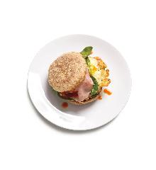 | Egg and Ham Breakfast Sandwich Recipe - Food.com english muffin, eggs, ham, cheese It is a sandwich that will fill you up after just one. It is very good for on the go! Serving Size: 1 (164) g Servings Per Recipe: 1 AMT. PER SERVING % DAILY VALUE Calories: 390.6 Calories from Fa...