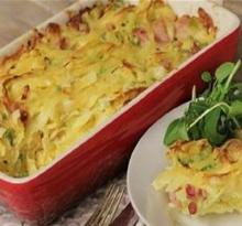 | Ham, Leek And Pea Pasta Bake Recipe Video by videojug | ifood.tv butter, oil, pepper, peas, leek, eggs, bacon, salt, parmesan cheese, cheddar cheese, pasta, cream Resident Videojug Chef Joanna Kilvington is back in the kitchen and this week she shows you how to make a ham, leak and pea pasta bake, the perfect dinner for the whole family. GETTING READY: Preheat...