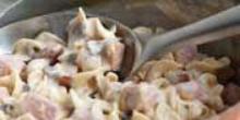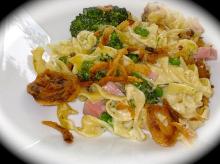 Ham and Noodle Casserole Recipe | SparkRecipes chicken soup, vegetables, carrot, onion, ham, noodles, mozzarella cheese, sour cream Easy, delicious and healthy Ham and Noodle Casserole recipe from SparkRecipes. See our top-rated recipes for Ham and Noodle Casserole. Boil water for egg noodles. Meanwhile, spray small sauce pan with...