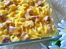 | Ham and Noodle Casserole Recipe - Food.com butter, chicken soup, ham, noodles, cheddar cheese, vegetable fat spread, milk Need a simple casserole sure to please the kids? I served this to friends who later left for Kenya...their girls were pining for it overseas, and you can bet I served it to them again when they return...