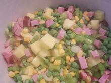 | Awesome Ham, Pea and Potato Soup Recipe - Food.com butter, chicken stock, pepper, dried onion, peas, potato, celery, ham, salt, milk, water, flour This soup is easy. I just throw it in the slow cooker. It's so tasty! Serving Size: 1 (296) g Servings Per Recipe: 8 AMT. PER SERVING % DAILY VALUE Calories: 259.3 Calories from Fat 115 g 45 %...