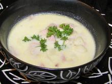 | Ham and Potato Soup Recipe - Food.com chili dried/powder, chicken stock, cottage cheese, olive oil, pepper, parsley, bay leaf, potato, onion, garlic, ham, water Serving Size: 1 (703) g Servings Per Recipe: 3 AMT. PER SERVING % DAILY VALUE Calories: 418.4 Calories from Fat 125 g 30 % Total Fat 13.9 g 21 % Saturated Fat 4.8 g 23 % Cholesterol 26.5 mg 8 %...