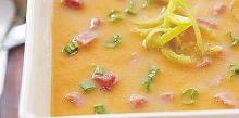| Scalloped Potato and Ham Soup butter, chicken stock, pepper, potato, carrot, onion, celery, ham, cheddar cheese, panko bread crumbs, half and half, flour Rich and creamy, this soup will remind you of the classic scalloped potato dish. We've topped it off with toasted panko bread crumbs for some added crunch. In a 5- to 6-qt. Dutch oven heat 2 Tbsp....