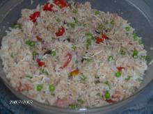 Rice Salad With Cherry Tomatoes, Parmesan, Peas, and Ham Recipe - Food.com dry cured ham, olive oil, pepper, basil, peas, garlic, tomato, ham, balsamic vinegar, salt, rice, parmesan cheese Taste the rice as it nears the end of its cooking time; it should be cooked through and toothsome, but not crunchy. Be careful not to overcook the rice or the grains will “blow out” and fr...