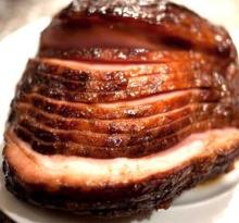 | Sweet and Juicy Baked Ham Recipe - Food.com fruit, ham, corn syrup, cola This is my own recipe from New Years Day 2006. Our guests raved about the flavor. It is simple to fix, unbelievably moist, sweet, and tasty! Serving Size: 1 (387) g Servings Per Recipe: 30 AMT. PER ...