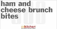 | Ham And Cheese Brunch Bites Recipe | CDKitchen.com baking mix, parsley, onion, garlic, eggs, ham, salt, parmesan cheese, cheddar cheese, sour cream, milk A recipe for Ham And Cheese Brunch Bites made with baking mix, ham, sharp Cheddar cheese, onion, Parmesan cheese, egg, sour cream, fresh Mix all ingredients; spread in greased 9 x 13" pan. Bake u...