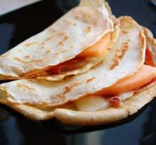 | Ham Apricot Crepes Recipe by American.Gourmet | ifood.tv butter, cornstarch, apricot, eggs, ham, salt, vegetable fat spread, sugar, lemon juice, apricot juice, milk, flour MAKING 1) Beat the egg just enough to blend it. 2) Add the milk, 1 tablespoon of melted butter and flour. Beat till the mixture is smooth. 3) Grease a 6-inch skillet lightly and heat it. 4) Take t...