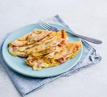 | French Ham, Cheese, and Egg Crepes Recipe - Food.com swiss cheese, oil, eggs, ham, salt, cheese, milk, water, flour from baking bites - http://bakingbites.com/2009/08/french-ham-cheese-and-egg-crepes-step-by-step/ Serving Size: 1 (312) g Servings Per Recipe: 6 AMT. PER SERVING % DAILY VALUE Calories: 565.1 Calo...