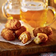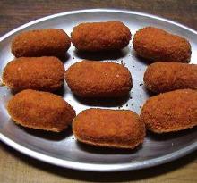 | Ham Croquettes With Cheese Sauce Recipe - Food.com butter, swiss cheese, oil, curry powder, pepper, onion, eggs, ham, mustard, salt, cheese, bread crumbs, vegetable fat spread, fat, milk, water, flour From BH&G's 1980 all-time favorties. One hour chilling time before shaping. Serving Size: 1 (194) g Servings Per Recipe: 5 AMT. PER SERVING % DAILY VALUE Calories: 444.5 Calories from Fat ...