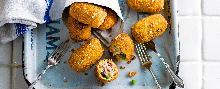 Ham hock and pea croquettes recipe | olivemagazine butter, english mustard, parsley, peas, eggs, ham, cheddar cheese, bread crumbs, milk, flour These ham hock and pea croquettes make the perfect accompaniment to drinks. Try to use a whole ham hock for this so that you can keep the pieces really chunky. Butchers and larger supermarkets sell th...