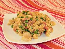 | Fried Brown Rice With Ham and Shrimp Recipe | CDKitchen.com smoked turkey, brown rice, oil, pepper, ginger root, peas, onion, shrimp, eggs, ham, soy sauce, salt This fried rice recipe calls for either baked ham or smoked turkey. We highly recommend trying the smoked turkey in it! It also uses brown rice instead of white and calls for some chopped shrimp along...