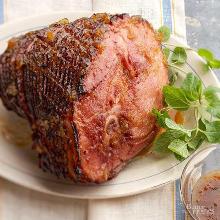 | Fresh Ham with Spiced Apple Glaze - Ham pork leg, apple jelly, thyme, pepper, nutmeg, cloves, cinnamon, balsamic vinegar, salt A whole ham will provide enough meat for your grandest dinner party. A fragrant blend of cinnamon, cloves, and nutmeg—ideal with pork—is rubbed on before roasting. Serve with several kinds...