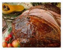 | Apricot-Glazed Ham cornstarch, nutmeg, cloves, ham, brown sugar, lemon juice, apricot juice Apricot-Glazed Ham is a wondeful ham to serve at Christmas. The great taste of the apricot, makes this ham extra tasty. Place ham on rack in a shallow roasting pan. Bake, uncovered, in a 325 degree F....