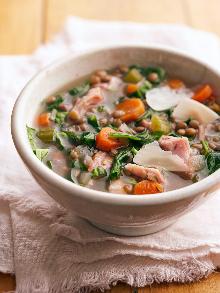 Lentil-Ham Soup chicken stock, thyme, lentil, carrot, onion, celery, spinach, ham, parmesan cheese, water Try this simple slow cooker recipe for a modern twist on ham and bean soup. In a 4- to 5-quart slow cooker, combine broth, the water, onion, celery, carrot, lentils, ham, and thyme. Cover and cook on...