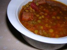 | Spicy Lentil Tomato Soup With Ham Recipe - Food.com chicken stock, thyme, oregano, cayenne pepper, basil, lentil, chickpea, carrot, onion, garlic, celery, tomato, cabbage, ham, salt From 1001 Slow Cooker Recipes Serving Size: 1 (549) g Servings Per Recipe: 6 AMT. PER SERVING % DAILY VALUE Calories: 222.5 Calories from Fat 28 g 13 % Total Fat 3.1 g 4 % Saturated Fat 0.8 g 3 ...