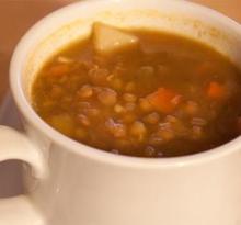 | Lentil and Pea Soup (Ham Hocks) Recipe - Soul.Food.com split peas, oil, thyme, sage, marjoram, bay leaf, lentil, lemon, carrot, onion, garlic, celery, ham, salt, lemon juice, water Try this hearty soup for supper with chunks of rye bread to dunk. All you'll need to finish a comfort food supper is some apples and cheese for dessert. Serving Size: 1 (321) g Servings Per Recip...