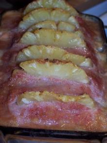 Pineapple Ham Loaf Recipe pepper, pineapple, eggs, pork, ham, mustard, vinegar, crackers, brown sugar, milk, water PINEAPPLE HAM LOAF In large bowl beat eggs then add milk, crackers and pepper. Add ham and pork and mix well then shape into loaf and place in shallow baking dish. In small bowl combine sauce ingre...