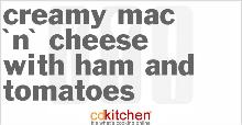 Creamy Mac 'N' Cheese With Ham And Tomatoes Recipe | CDKitchen.com butter, bicarbonate of soda, cooking spray, pepper, tomato, ham, salt, cheddar cheese, pasta, vegetable fat spread, milk, flour A recipe for Creamy Mac 'N' Cheese With Ham And Tomatoes made with non-stick cooking spray, elbow macaroni, diced tomatoes, baking soda, butter or Preheat oven to 375 degrees F. Spray an 8x8-i...