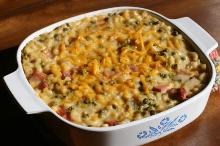 | Ham, Broccoli, Mac 'n Cheese Casserole Recipe - Southern.Food.com sweet onion, pepper, mustard powder, cayenne pepper, broccoli, ham, salt, cheddar cheese, pasta, vegetable fat spread, milk, flour I had some leftover bits and pieces, and I wanted to clean out the Fridge . So, I mixed them all together and came up with this recipe. If you try this, change the amounts of seasonings according to y...
