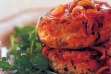 | Turkey and ham patties with cranberry and onion sauce - Recipes - delicious.com.au cranberry sauce, mashed potato, salad, chicken stock, vegetables, olive oil, thyme, sage, parsley, shallot, spring onion, onion, turkey, eggs, ham, port, flour Great in a burger or by themselves, these turkey and ham patties are served with an easy cranberry and onion sauce. 1. Place the ham and turkey in a food processor and process to roughly chop. Transf...