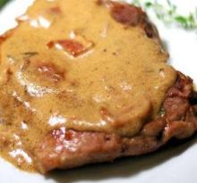 | Ham And Veal Patties With Mustard Sauce Recipe by Canadian.Recipes | ifood.tv butter, pepper, nutmeg, marjoram, onion, celery, eggs, ham, veal, mustard, apple cider vinegar, salt, bread crumbs, whipped cream, milk GETTING READY 1. For making the mustard Sauce, in 2-cup (500 milliliter ) measure, combine butter and onion and microwave at High for 2 to 3 minutes or until onion is tender. 2. Stir in cream, musta...