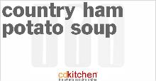 | Country Ham Potato Soup Recipe | CDKitchen.com butter, heavy cream, chili dried/powder, chicken stock, thyme, pepper, potato, onion, garlic, ham, cheddar cheese, sour cream, flour A 5-star recipe for Country Ham Potato Soup made with butter, onion, garlic, country ham, all-purpose flour, chicken broth, new potatoes, heavy In a large stockpot, over medium-high heat, melt butter....