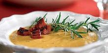 | Sweet Potato-Peanut Soup with Ham Croutons Recipe | MyRecipes butter, chicken stock, rosemary, pepper, sweet potato, onion, garlic, celery, ham, peanut butter, salt, vegetable fat spread, whipped cream The peanut flavor in this rich appetizer soup makes the ham croutons completely addictive. Instructions Checklist Step 1 Melt butter in a Dutch oven over medium heat; add onion, celery, and garlic, ...