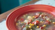 | Corn Soup with Potatoes and Smoked Ham Recipe | Bon Appetit pork steak, red bell pepper, green bell pepper, potato, onion, garlic, sweetcorn, ham, fat, water Corn Soup with Potatoes and Smoked Ham Recipe Melt lard in heavy large pot over high heat. Add ham steak, onion, both bell peppers, and garlic; saute until vegetables are tender, about 10 minutes. Add...