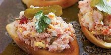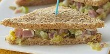 | Ham Salad Tea Sandwiches Recipe | MyRecipes pepper, okra, eggs, ham, salt, mayonnaise Made with sweet-hot pickled okra and hard-cooked eggs, Ham Salad Tea Sandwiches are a crowd-pleasing favorite sandwich filling. Plan on 1⁄4 cup filling for each whole sandwich. Freeze bread slic...
