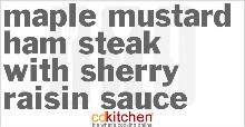 | Maple Mustard Ham Steak With Sherry-Raisin Sauce Recipe | CDKitchen.com butter, pork steak, dry sherry, raisin, mustard, maple syrup, apple cider A recipe for Maple Mustard Ham Steak With Sherry-Raisin Sauce made with apple cider, dry sherry, raisins, maple syrup, butter, Dijon mustard, ham Preheat the broiler. Coat a broiler pan with cooking s...