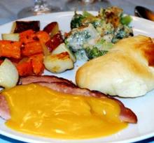 | Hot Ham & Cheese Rolls With Mustard Sauce Recipe | CDKitchen.com swiss cheese, poppy seed, onion, ham, mustard, worcestershire sauce, mayonnaise A recipe for Hot Ham & Cheese Rolls With Mustard Sauce made with mayonnaise, mustard, onion, poppy seeds, Worcestershire sauce, ham, Swiss cheese, party Preheat oven to 350 degrees F. Blend togeth...