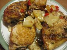 | Tropical Crock Pot Chicken Recipe - Food.com chicken breast, red bell pepper, tarragon, pepper, paprika, pineapple, spring onion, garlic, mustard, soy sauce, salt An easy slow cooker recipe. Serving Size: 1 (307) g Servings Per Recipe: 6 AMT. PER SERVING % DAILY VALUE Calories: 273.2 Calories from Fat 47 g 17 % Total Fat 5.3 g 8 % Saturated Fat 1.1 g 5 % ...